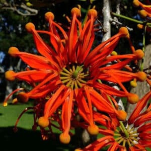 Along with more common species, we’ll see locally uncommon introductions, such as Firewheel Tree, Giant Fishtail Palm, Coast Banksia, Guadalupe Palm, Banyan Fig, and Mallet Flower. The tour will also visit a national champion Big Tree!